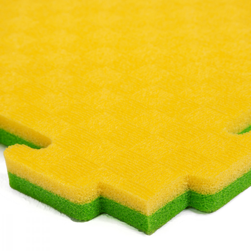 Эта двухцветная модель просто создана для оборудования детских спортивных секций, игровых комнат или залов восточных единоборств. Вы можете чередовать желтую и зеленую стороны, чтобы визуально выделить зону спарринга или создать на полу красивую шахматную разметку. Полимер EVA отличается превосходной упругостью — он смягчает падения, защищая суставы спортсменов от травм. Рифленая текстура "плетенка" гарантирует уверенное сцепление босых ног с поверхностью. Надежные замки-зацепы по всему периметру исключают расползание швов.